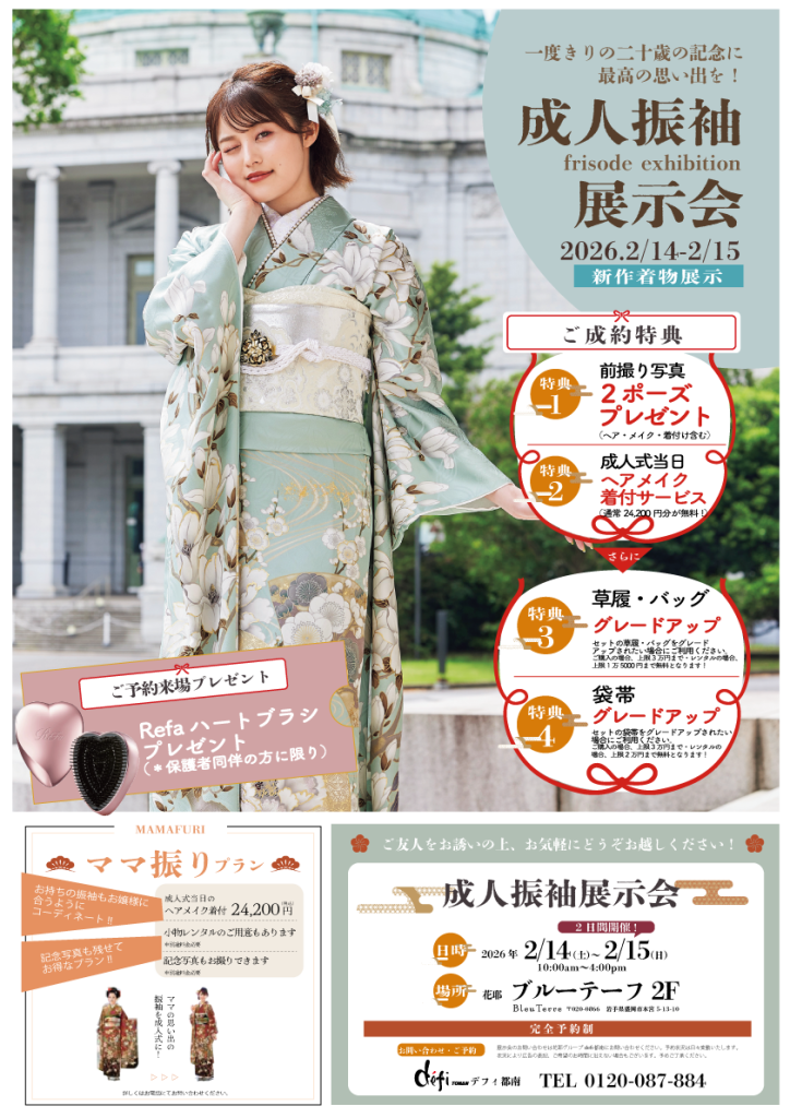 「成人振袖展示会」2026年2月14日から2月15日までの2日間